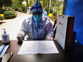集团审计法务部舒勤在向两江新区金州社区报道后,加入了信息录入小队。第一天上岗穿上防护服时就意识到抗疫一线志愿者的责任重大:从核酸检测开始,开管、扫描、确认姓名……每个环节都不能出错,需要打起万分精神认真对待。舒勤在熟练操作后,信息录入之余也能注意到更多细节:提醒等待检测的人员保持距离,提醒小朋友正确佩戴口罩、手不要到处乱摸、注意消毒等。当得知其他志愿者小队缺乏人手之后,舒勤又主动加入了小区驻守大门的队伍。对出入小区人员严格检查,对送到小区的快递外卖分类收发……舒勤说,虽然志愿者的工作难度不大却又琐碎繁杂,但在听到一声声的“谢谢”后,觉得自己能为家园创建“无疫小区”、为抗疫贡献一份微薄的力量时,感到所有的付出是值得的。