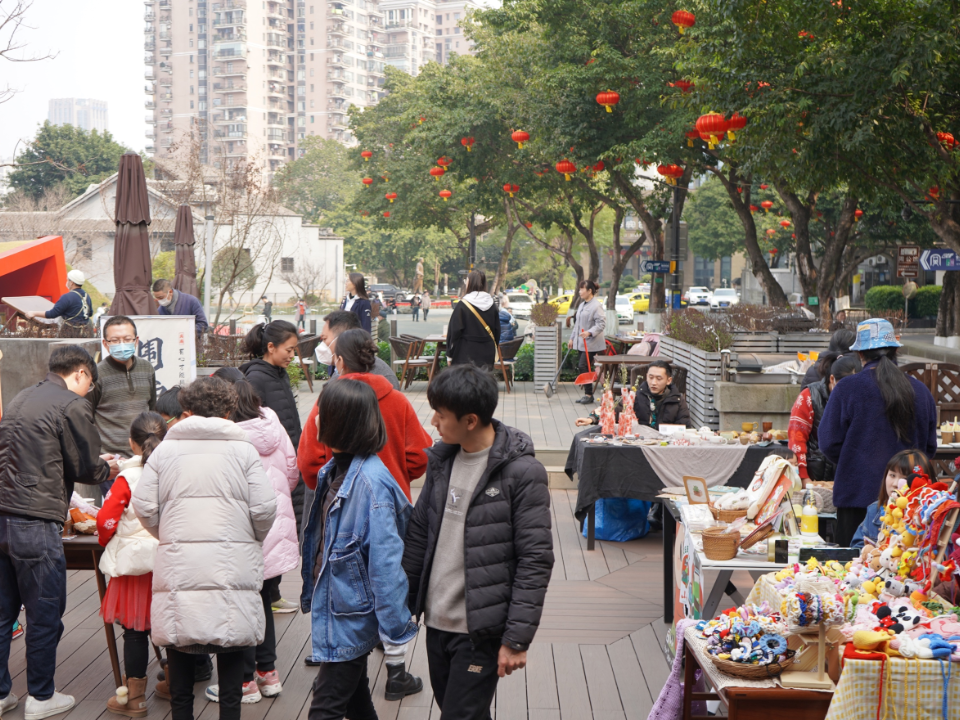 在元宵节,85号创意公馆策划了元宵市集、猜灯谜、做花糕等活动,来参加活动的人们络绎不绝。